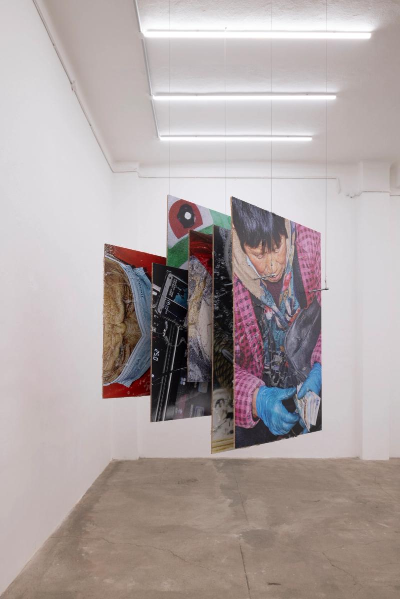 Meno convincente, invece, appare l’allestimento di GDP CN (2026) di Satoshi Fujiwara. Si tratta di un’installazione fotografica su pannelli industriali che accosta le immagini scattate a Wuhan nel 2024 con la trecentesca Ribellione dei Turbanti Rossi attraverso l’applicazione di gel trasparente sulle superfici fotografiche. L’opera, però, finisce per sovrastare gli altri elementi dell’esposizione, assumendo una centralità che monopolizza lo sguardo del visitatore e che forse solo la barriera allestitiva riesce a contrastare. Anche lavori politicamente e simbolicamente più densi, come il tema natale dell’attacco di Hamas del 7 ottobre realizzato da Hannah Black (The Directions, 2026), risultano schiacciati dalla sua presenza, rischiando di passare in secondo piano.