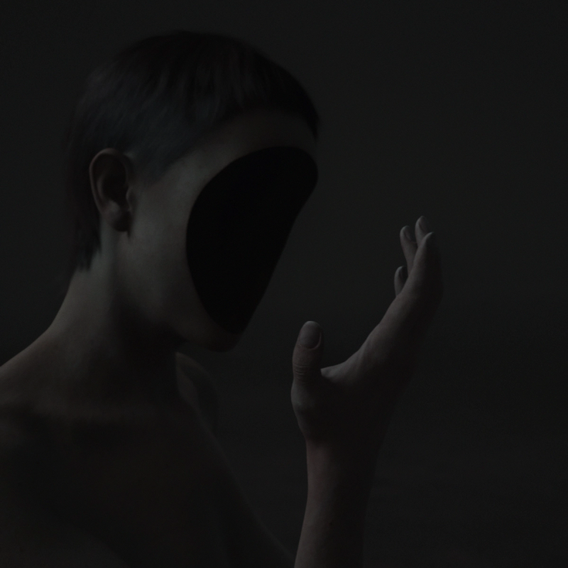 Nel 2024 questo indizio si poteva sciogliere grazie a una scultura contigua al video di Liminal, intitolata Estelarium, il calco in basalto di un ventre gravido. Il tema liminale di quella sala intendeva registrare la forma e la presenza di ciò che è ancora potenziale. Privata anche di questo aggancio concettuale, la rappresentazione di una donna, fertile, con i capelli rasati, in pose passive e gesti basilari come tastare il terreno o rannicchiarsi, avanzare a quattro zampe, non sembra riducibile a un “human” neutro e indeterminato, e interroga viceversa sulla componente maschile di questa fantasia. Poteva venire in mente il recente ritratto di Emma Stone in Bugonia di Yorgos Lanthimos, un’altra figura-limite dell’umano immaginata su un corpo femminile prostrato e passivo. La caratteristica principale della figura è la cavità che le annulla il viso, un’immagine del vuoto e dell’indeterminato che nel film echeggiava l’abisso cosmico a cui la donna si affacciava. Come hanno notato Daniela Trincia (Doppiozero) e Alice Creischer e Andreas Siekmann (neues deutschland), anche alla luce del contesto veneziano della prima versione di Liminal, la sagoma nera sul volto risulta molto simile a una maschera femminile sei-settecentesca, nota come “moretta” o “servetta muta”, un ovale di velluto che si indossava mordendo un bottone interno, che nel codice di seduzione esaltava il silenzio e il pallore delle donne aristocratiche (di cui oggi forse si misurano pure le implicazioni colonialiste e patriarcali).